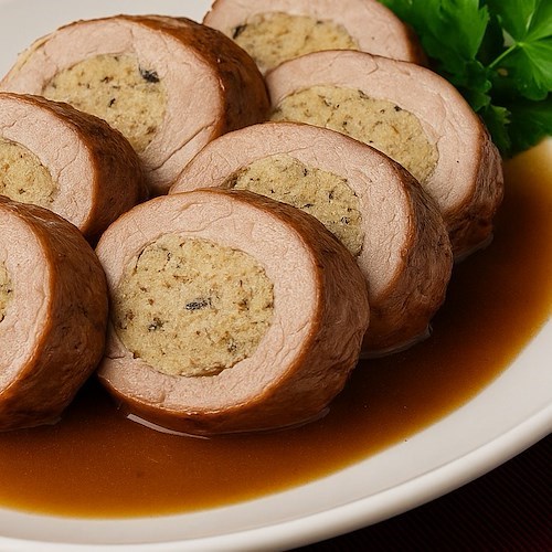 La ricetta nasce da una lavorazione attenta e delicata. Le carni di vitello e maiale vengono tritate finemente e amalgamate con parmigiano grattugiato, un uovo intero, prezzemolo fresco, tartufo nero a dadini, sale e pepe. Il composto diventa così una farcia profumata che va ad arricchire il cosciotto di agnello, disossato con cura e poi richiuso con stecchini o cucito con filo da cucina. Dopo una breve rosolatura in olio extravergine d'oliva, il cosciotto viene passato in forno e bagnato con vino bianco secco, fino a raggiungere una cottura morbida e succosa. Il risultato è un piatto raffinato, da servire affettato e glassato con il suo stesso fondo di cottura.